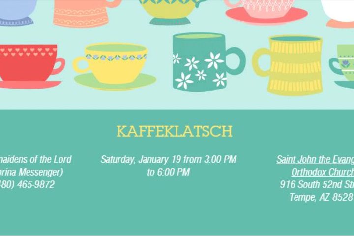 Let’s continue celebrate the New Year by reviving a tradition dating back to the 17th Century! Please join the Handmaidens of the Lord of St John’s for an old time “Kaffeeklatsch” i.e. a lovely afternoon of coffee, a variety of specialty Central European pastries, refined entertainment and, of course, conversation and fellowship! Bring your favorite coffee cup, one that has special significance to you. *RSVP through the Evite website by January 2, 2019 or telephone Sabrina Messenger at (480) 465-9872.…